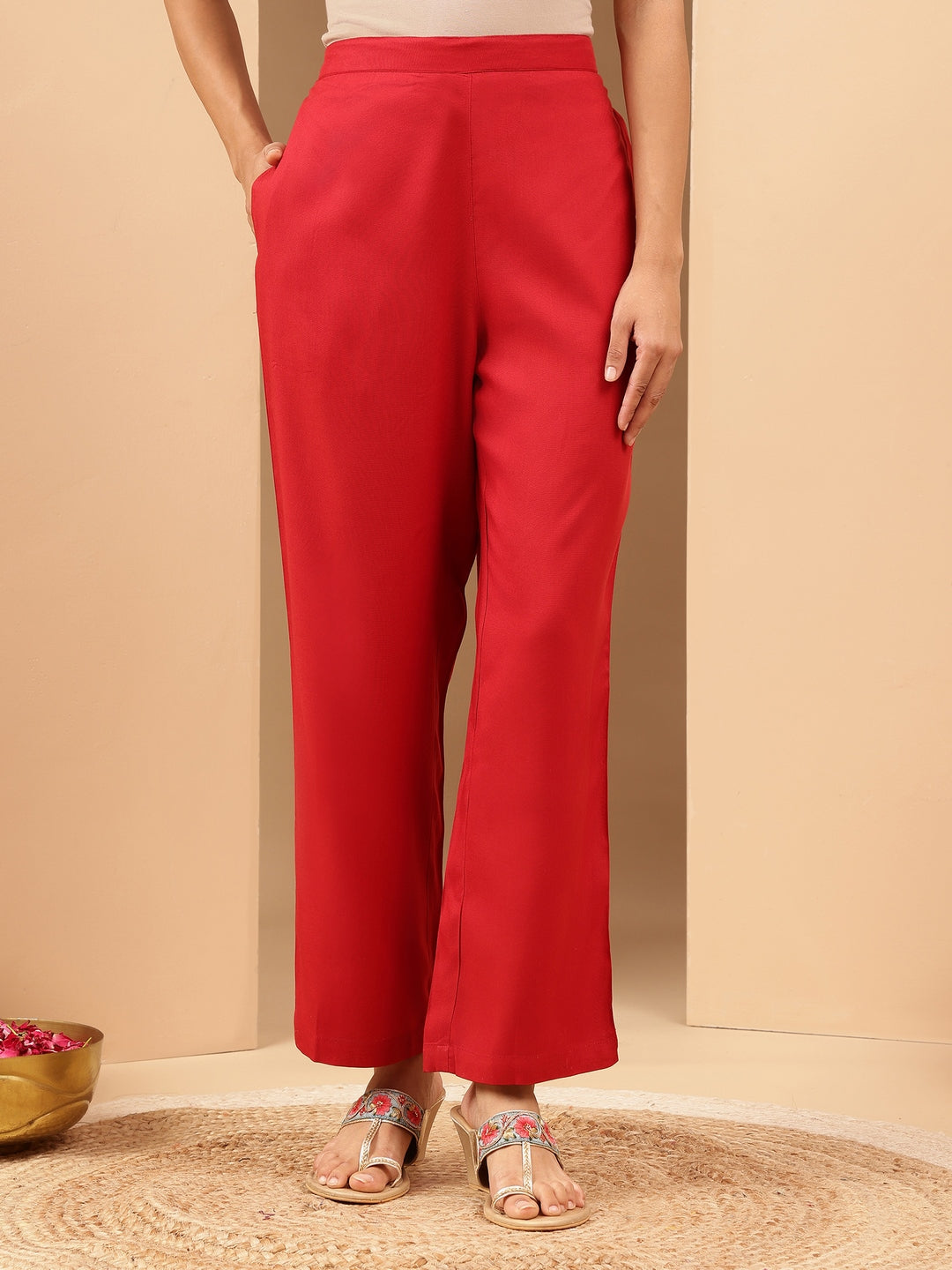 - Make a striking statement with this maroon straight kurta set from Janasya, crafted in soft, breathable rayon fabric. The v-neckline is elevated with a mirror-embellished placket adorned in intricate zari work, creating a festive focal point. The three-quarter sleeves feature matching mirror and zari detailing on the hem, adding charm and elegance. Paired with a solid maroon straight-fit pant featuring a semi-elasticated waist for all-day comfort. Completing the set is a cotton dupatta bordered with lace that adds fluidity and flair. Pair with oxidized jhumkas and a bold mirror ring for a head-turning traditional look.