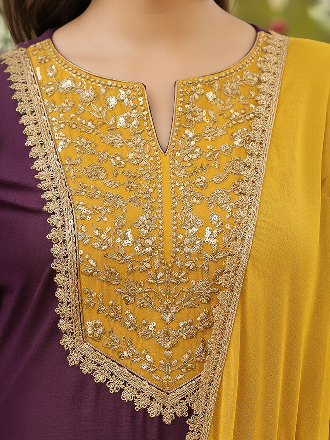 - Kurta Color : Purple | Pant Color : Mustard | Dupatta Color : Mustard