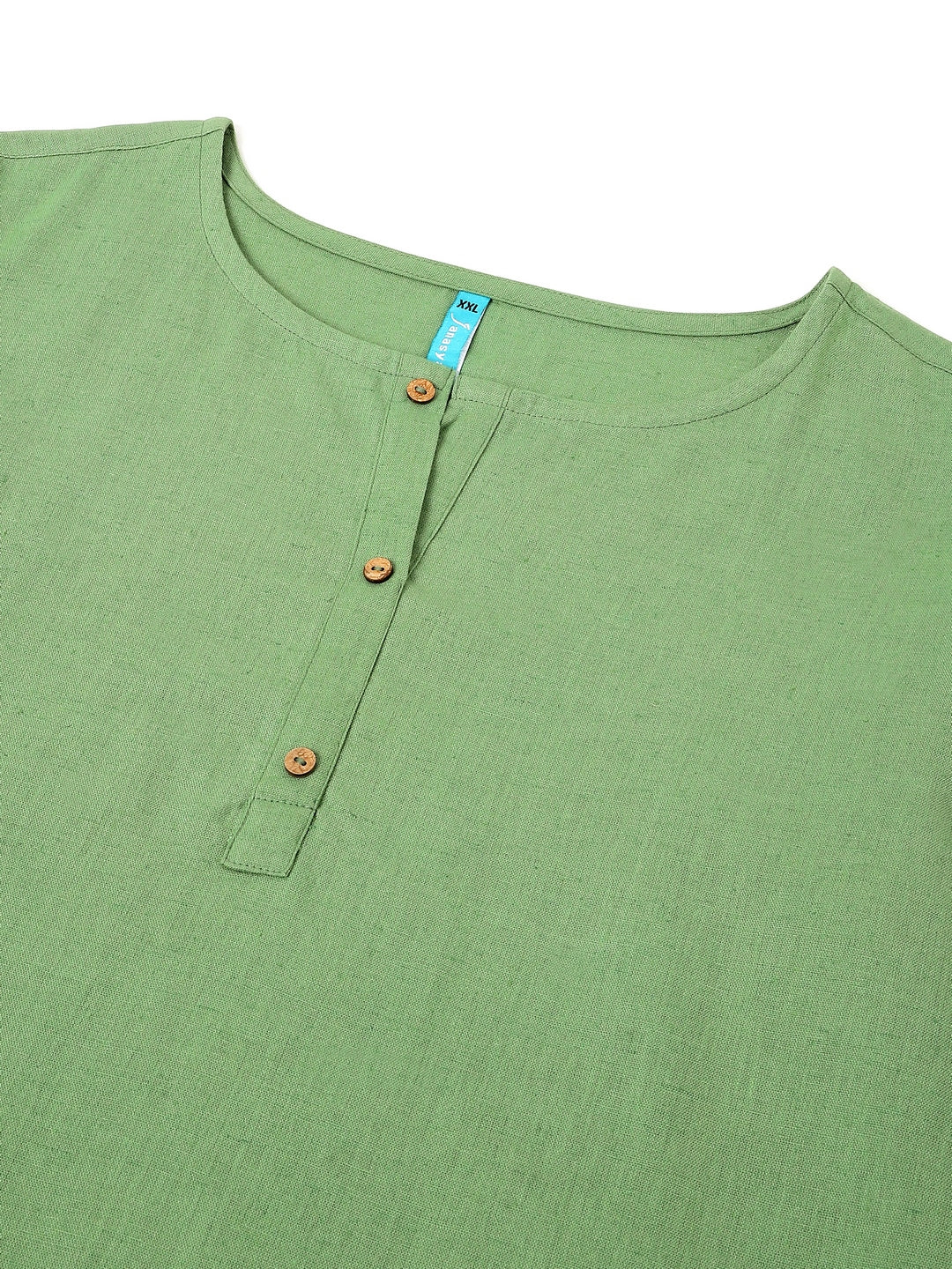 Plus Size Green Cotton Solid A-line Co-ord Set